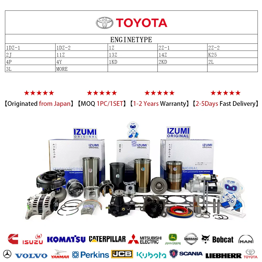 ਇਜ਼ੂਮੀ ਓਰੀਜੀਨਲ 2L, 3L ਪਿਸਟਨ, ਉੱਚ-ਗੁਣਵੱਤਾ ਇੰਜਣ ਪਾਰਟਸ, ਸਿਲੈਂਡਰ ਲਾਈਨਰ ਓਵਰਹਾਲ ਰੀਬਿਲਡ ਕਿੱਟ ਟੋਯੋਟਾ ਲਈ