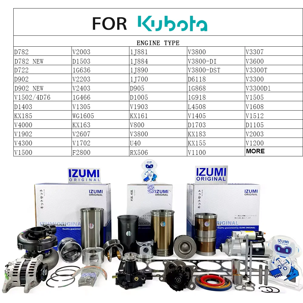 Комплект для капитального ремонта поршней двигателя IZUMI Kubota для двигателя V2203, 4-цилиндровый комплект для ремонта и восстановления дизельного двигателя V2203 для экскаваторов